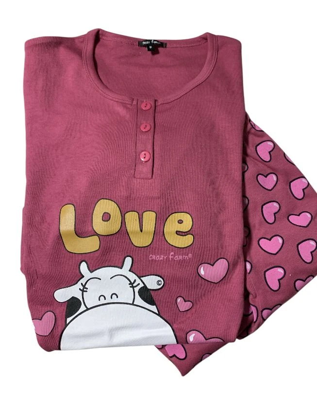 Pigiama Donna 100% Cotone Caldo Crazy Farm 15656 Fine Serie Outlet