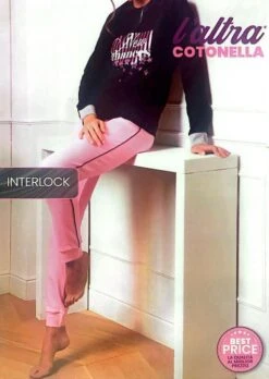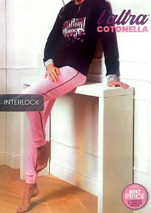 Pigiama Donna 100% cotone caldo pesante Cotonella ddc000 maglia43 aperta a serafino con stampa con bordo e bordo e pantalone con bordo alle caviglie, Composizione 100% cotone pesante invernale interlock Disponibile nelle taglie S/42 M/44 L/46 XL/48 Nero/Rosa e Grigio/Nero