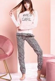 Pigiama Donna caldo cotone invernale Love and Bra 50399 Maglia girocollo con scritta sul davanti e pantalone fantasia animallier il tutto in cotone caldo invernale pesante.