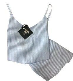 Pigiama Donna stoffa corto 100% cotone THINK PINK 2021 Outlet sopra top canottiera spalla stretta e pantalone corto in tessuto stoffa puro cotone 100% fantasia bacchettato a righe.
